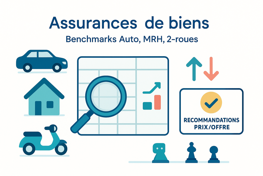 Études et benchmarks (Auto, MRH, 2-roues) : relevés structurés, matrices tarifaires, analyse concurrentielle, recommandations prix/offre.